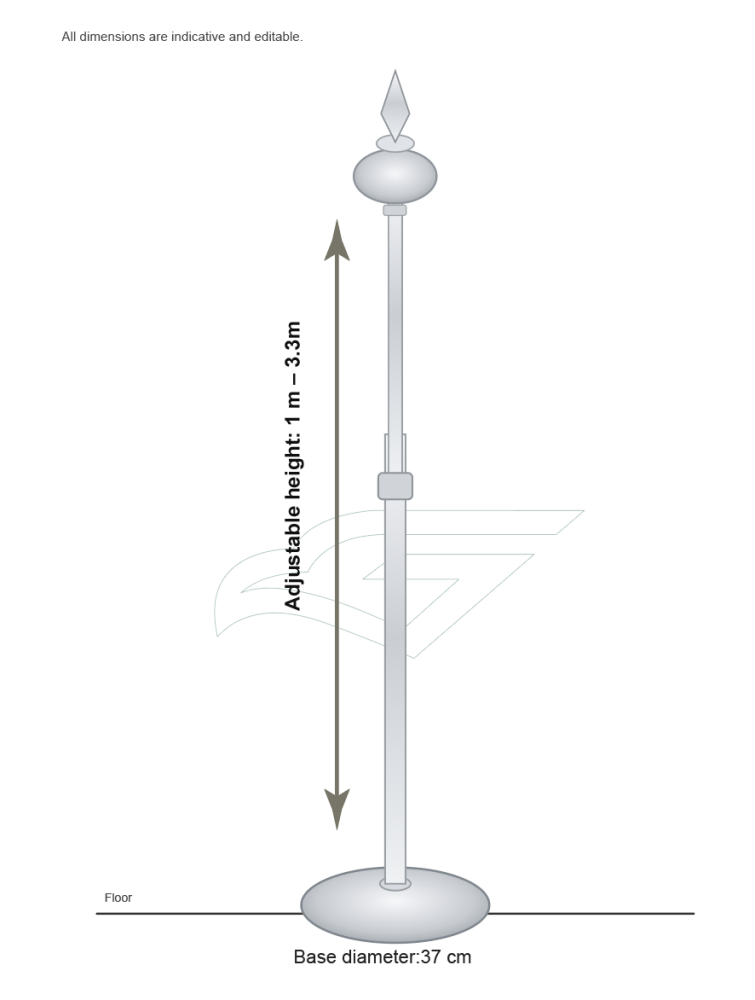 سارية علم أرضية مصنوعة من خامة معدنية ثقيلة بلمعة ذهبية أو فضية، تمنح مظهر رسمي وراقي يلائم القاعات، المكاتب الحكومية، الفعاليات الوطنية، والمنصات. تصميم السارية قابل للارتفاع حتى 2.60 م، مما يجعلها حامل علم فاخر ومناسب لجميع الأعلام الداخلية.